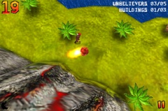 時間内に溶岩ボールを操作して、島の原住民や家を焼き尽くすアクションゲームです。