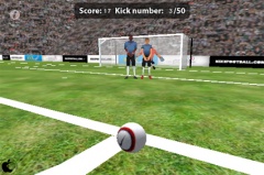ゴール前や、コーナーから、ひたすらフリーキックを続けるゲームアプリです。