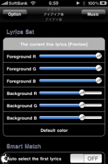 画面左上のオプションをタップすると、歌詞を表示する文字色などを自由に変更することが出来るようになっています。
