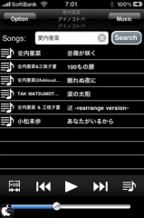 アプリを起動して、画面右上のMusicから、iPod内の曲を選択します。