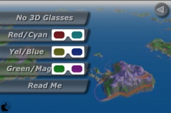 このアプリは、赤青など2色のメガネで見る事で立体視出来るアナグリフ式表示にも対応していて、アナグリフメガネを使ってプレイすると、より楽しめるのが特徴だと思います。