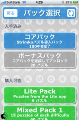 最初にパックの選択画面が表示されますが、基本は100個のパズルが収録されたコアパックを選択すれば良いと思います。