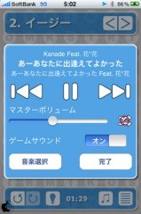 画面下の音符アイコンをタップすると、アプリからiPodの曲を再生したり、曲を選択したりすることが出来るようになっています。