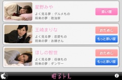 2010年03月05日(金) iPhone App Store#iPhone_3GS#iPod_touch#眠るドル 眠り続けるアイドルアプリ「眠るドル」を試す ※本サイトは、アフィリエイト広告および広告による収益を得て運営しています。購入により売上の一部が本サイトに還元されることがあります。 眠るドル textraが、iPhone/iPod touch用眠り続けるアイドルアプリ「眠るドル」を、App Storeにて無料配付していたので試してみました。 アイドルとして、星野みや、王崎まりな、ほしの智世の3人が収録されているアプリです。 3人の中から好きなアイドルを選択すると、眠っている姿が表示されます。 画面をタップしたり、マイクに向かって息を吹きかけたりすると、色々な寝言を言ってくれます。 本体を振ると、運勢占いの寝言を聞く事が出来ます。 王崎まりなとほしの智世は、もっと添い寝(115円)を購入すると、決まった時間に起こしてくれるタイマー機能などが利用出来るようになるそうです。 ↓の評価ボタンを押してランキングをチェック!
