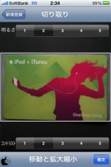選択すると、切り取り画面が表示され、写真の位置調整や、ピンチ操作による拡大/縮小などを行うことが出来ます。