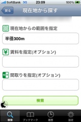検索条件として、現在地情報を元にした距離範囲検索と、駅付近の検索の2通りで検索することが出来ます。
