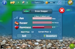 熱帯魚をタップすると、熱帯魚の状態を確認したり、熱帯魚を売ったりすることが出来るようになっています。