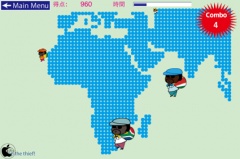 世界地図上に出現する泥棒を正確にタップして、コンボを連続発生させることで高得点を狙うタッチゲームアプリです。