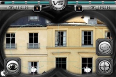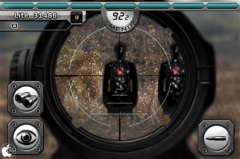 敵を発見したら、画面右の弾丸アイコンをタップして、スコープを表示させ、敵を狙って狙撃します。