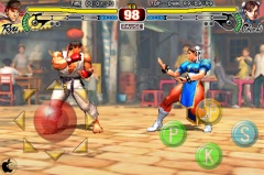 マルチタッチスクリーンを使った,ヴィジュアルパッドによる操作によってプレイすることができ、キャラクターは、「リュウ」「ケン」「春麗」「ガイル」「ダルシム」「ブランカ」「アベル」「ベガ」の8人が用意されています。