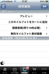 ネイルフォト設定が完了したら、画像編集をタップし、画像登録を選択します。