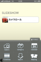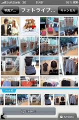 メニューのImportをタップすると、写真ライブラリーが表示され、予め作成したカテゴリー(初回はカメラロールというカテゴリーが用意されている)に写真を分類分けすることが出来ます。