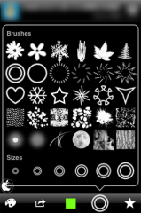 画面下の二重丸アイコンをタップすると、ブラシのパターンが表示され、好きなブラシパターンに変える事も出来ます。