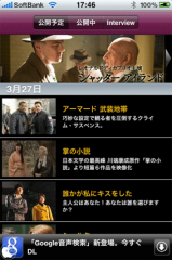 アプリを起動すると、現在公開中の劇場作品の情報を読む事が出来ます。