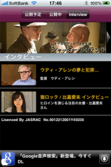 インタビュータブをタップすると、監督や出演者へのインタビューを読む事が出来るようになっています。