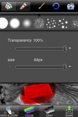 写真をモノクロ表示し、部分的に元の色を浮かせる写真編集アプリです。