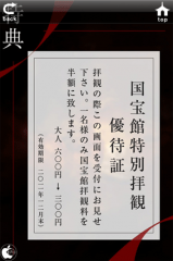 このアプリには、2011年12月末まで利用出来る国宝館の割引券も付いています。