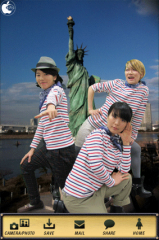 チャットモンチー、CHEMISTRY、Puffy、東京スカパラダイスオーケストラ、ユニコーンとの記念写真を作成出来る写真編集アプリです。