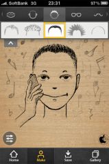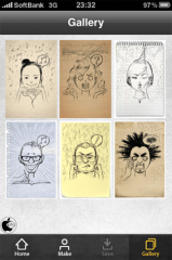 右下のGalleryをタップすると、アプリで作成した似顔絵を保存して閲覧することが出来るようになています。