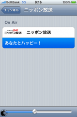アプリを起動すると、聴取可能な放送局がリスト表示され、好きな局をタップすると聴取することが出来ます。