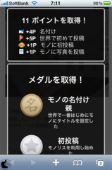 また、モノの名付け親、初投稿など、行ったアクションによってメダルが獲得出来ます。