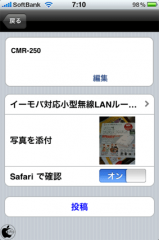 スキャンが完了すると、投稿するための入力が表示されるので、投稿内容や、写真貼付などを行った後、投稿ボタンをタップして投稿します。
