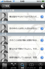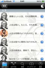 好きなカテゴリーをタップすると、偉人達の写真と共に格言が一覧表示されます。