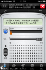 ダウンロードが完了すると、ラジオ風プレイヤーが表示され、Podcast番組が再生されます。