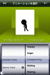 棒人間のアニメーションを効果音や吹き出しメッセージ付きで作成でき、それをメールに添付して送付できるアプリです。