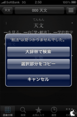 iPhoneに「大辞林」がインストールされている場合、角川類語新辞典で見つからなかった言葉を探すことが出来るようになっています。