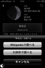 語句の横に表示されている?をタップすると、Wikipediaで調べたり、大辞林(iPhoneにインストールされている必要あり)で調べたり出来ます。