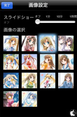 画像設定をタップすると、スライドショーの間隔設定や、画像の選択などを行う事が出来るようになっています。