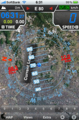 基本は車で移動中に使用すると、戦闘機風ヘッドアップディスプレイでナビが表示されるというアプリです。