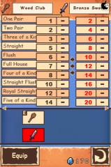 武器を獲得したら、Statusから装備する武器を変える事で、役が成立したときの攻撃力がアップします。