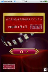 パーソナルカードを選択すると、占いたい人物の生年月日を入力すると、その人のカードが1枚だけ表示されるようになっています。