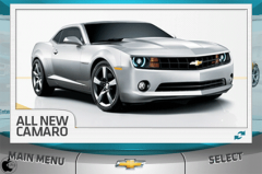 トップメニューのCHEVY DUGOUTをタップすると、シボレーの車カタログを見る事が出来るようになっています。