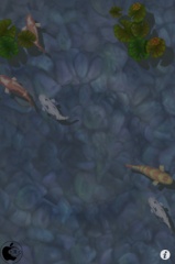 アプリを起動するとスクリーンセイバーのような感じですが、画面をタップすると波紋が広がり、鯉が逃げてゆきます。