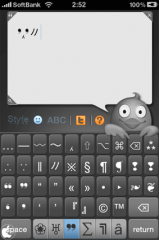 日本語テキストで利用する場合は、スマイルマークをタップし、Unicodeにある修飾文字を使って、絵文字を付加したり、顔文字を作成したりすることが出来ます。