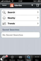 検索タブには、キーワード検索、GPS情報による絞り込み、キーワードトレンドなどを使う事が出来ます。