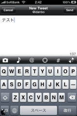 ツイートの新規投稿画面では、写真投稿、再生曲ツイート、ID検索、GPS情報、ハッシュタグ検索、短縮URLなどを付加することが出来ます。