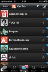 DMでは、ユーザーアカウントが表示され、ユーザーとの送受信結果がSMSのように表示されます。