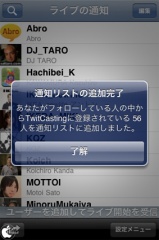 このユーザーの誰かがツイットキャスティングを始めると、放送が開始された事をPushで通知してくれます。