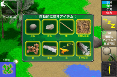 無人島に1人残されたキャラクターを画面タップで移動させ、様々なアイテムを探して組み合わせてきます。