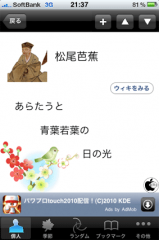 Ugattaが、iPhone/iPod touch用俳句集アプリ「日本の俳句」を、App Storeにて無料配付を開始していたので試してみました。