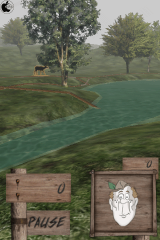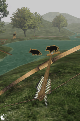 最初に右/左の利き手を決め、ゲームをスタートすると、森を移動する動物型の的が表示されます。