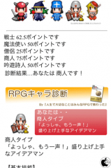 回答を終えて診断すると、RPGキャラ診断結果が表示されます。