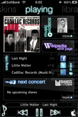 曲を再生し、画面上のリストをフリックして、Playingを選択すると、その楽曲に関連したミュージックビデオ、ウィキペディアなどを見る事が出来ます。