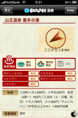 全国の温泉情報をまとめた「BIGLOBE温泉」の情報を元に、GPSを使って最寄りの日帰り温泉を検索出来るアプリです。