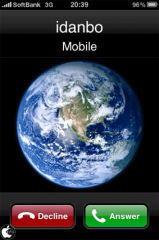 最初に、仮想の相手の名前を入力します。入力を終了すると、仮想人物から着信が鳴るので、この状態で、第三者にiPhoneを渡します。