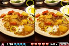 ゲームは、左右の写真を見比べながら、時間内に違っている場所を5ヶ所見つけます。